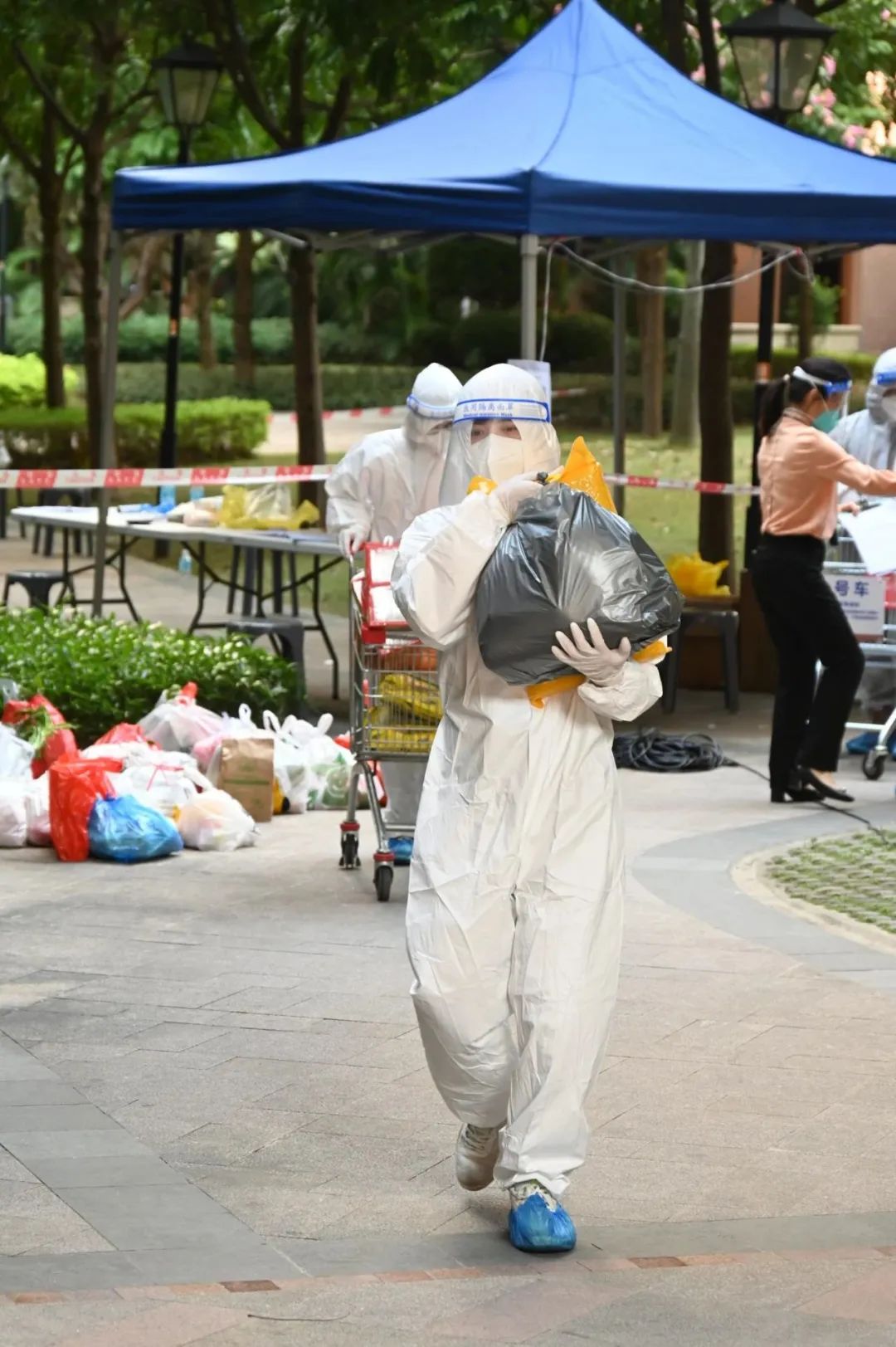 ▲“大白”们化身“大力士”,把责任扛在肩上,把温情记在心里