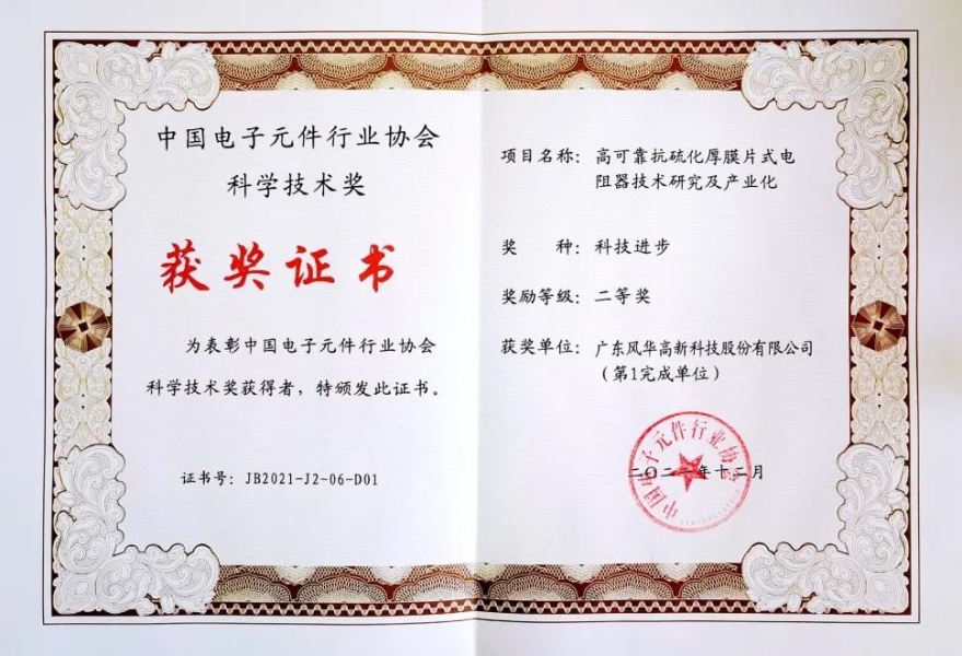 在近日召开的2021年度(第1届)中国电子元件行业协会科学技术颁奖大会上,利来国际高科的《高可靠抗硫化厚膜片式电阻器技术研究及产业化》项目获得中国电子元件行业协会科技奖科技进步二等奖。