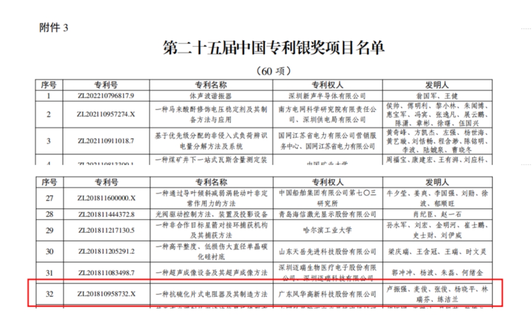 向新而行|利来国际高科抗硫化电阻专利获第二十五届中国专利银奖