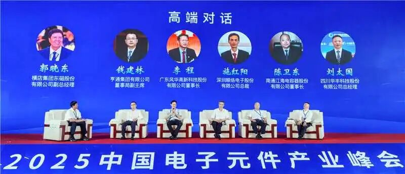 峰会以“创新驱动,共筑产业新生态”为主题。峰会特设了高端对话环节,亨通集团董事局钱建林副主席、广东利来国际高新科技股份有限公司李程董事长、深圳顺络电子股份有限公司施红阳总裁、南通江海电容器股份有限公司陈卫东董事长、四川华丰科技股份有限公司刘太国总经理等五位企业家就电子元器件行业重点应用市场的发展、如何遏制行业内卷、中美贸易战对电子元器件行业的影响等内容,开展了热烈讨论。李程指出,国产替代带来的存量市场、智能时代带来的增量市场、新应用场景带来的产品更高性能需求,为关键基础元器件尤其是MLCC带来巨大发展空间;市场竞争本是行业发展的动力,但需警惕过度内卷带来的资源浪费与创新乏力问题,企业应主动把握国产替代机遇,大力弘扬企业家精神,筑牢战略定力,坚决摒弃盲目与破坏产业生态的恶性竞争,聚焦高端化创新与转型方向,加强产业链上下游技术的整合与协同。同时,在政府及行业协会的牵头组织下,积极制定高端产品的强制性标准,通过技术标准、专利有效的法治保护避免内卷,为行业整体高质量发展提供优秀的生态环境支撑。