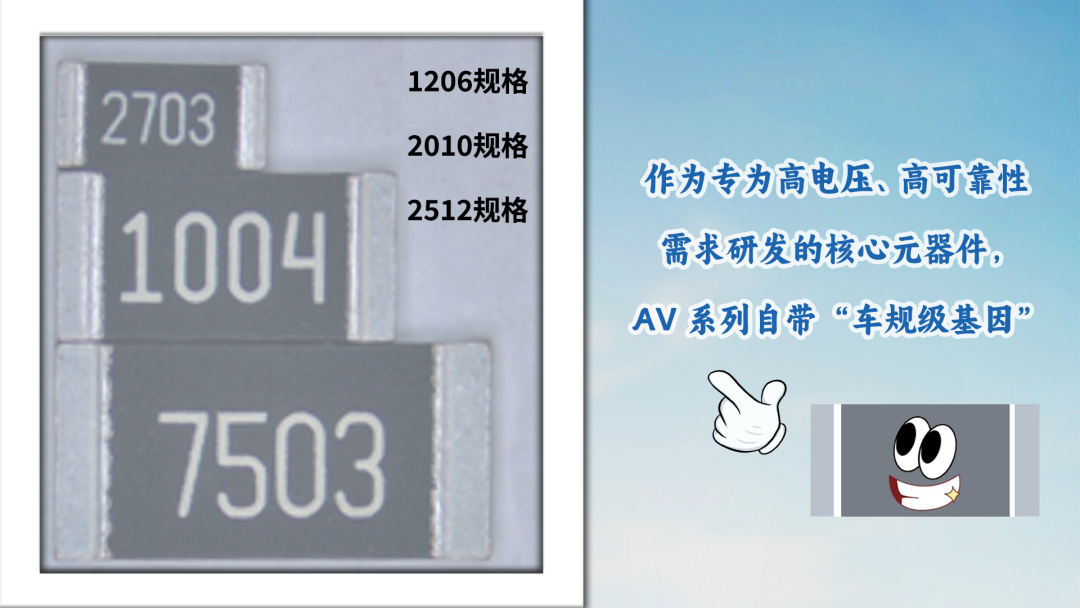 符合RoHS标准、无卤素的环保设计,让AV系列不仅“能打”更“绿色”。它打破了高压采样的技术瓶颈,更凭借车规级品质,成为新能源、工控领域的“首选电阻方案”——每一颗AV电阻,都是电子系统的“高压安全防线”!