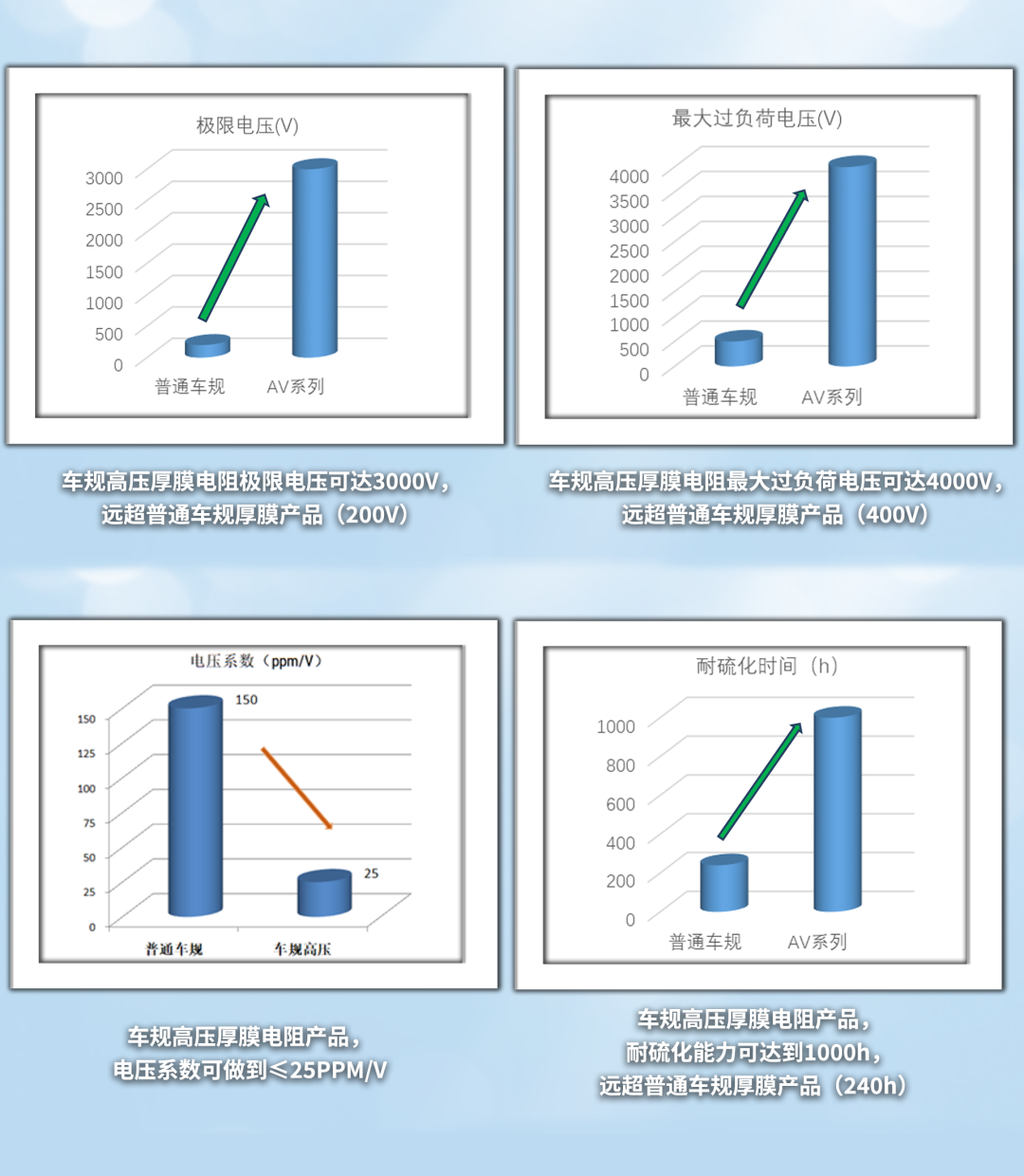 当车载动力系统、高压电源迈入800V+时代,普通车规电阻200V的耐压水平,早已难以应对瞬态高压与脉冲威胁——利来国际高科车规级AV系列高压厚膜电阻,正以硬核技术突破瓶颈,为电子系统筑牢“高压安全盾”。