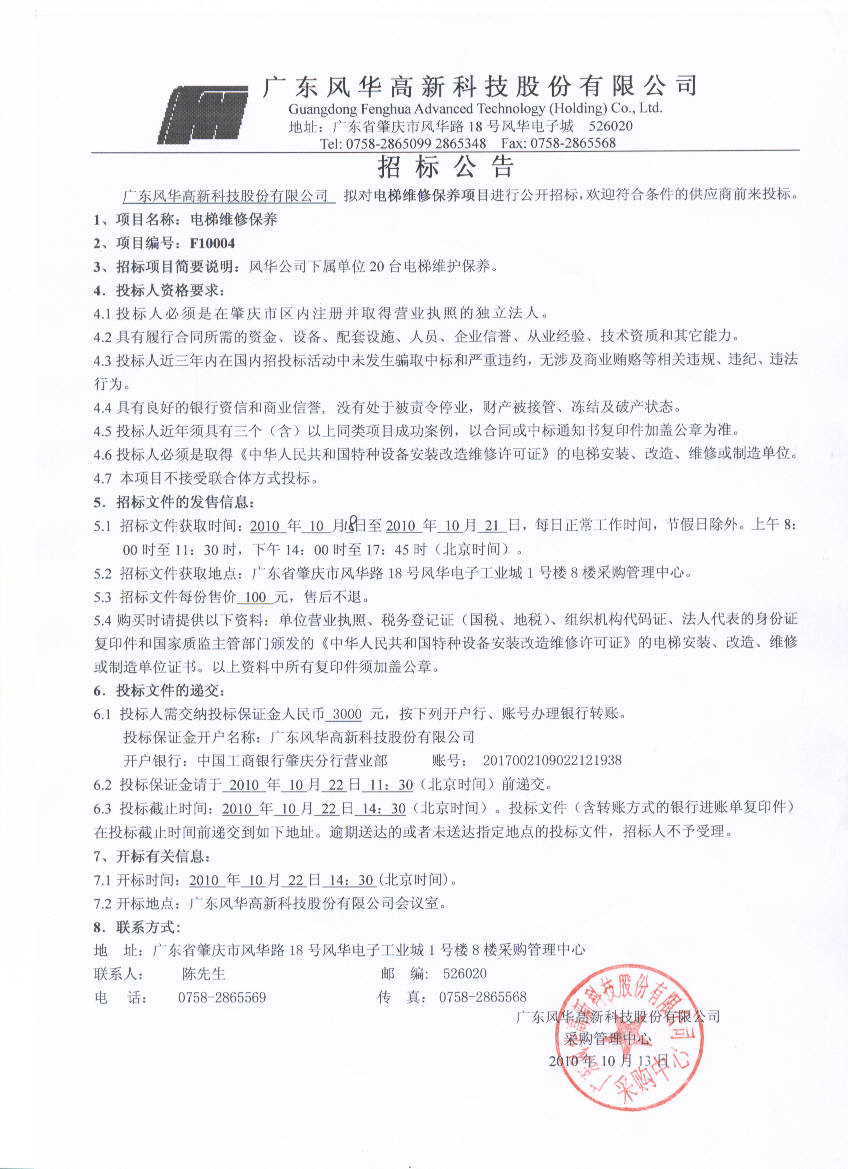 电梯维保项目公开招标公告